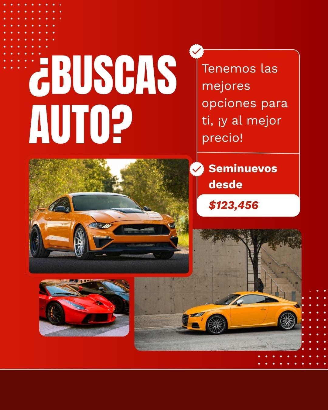Nuestro servicio de Creación de Contenido Visual está diseñado para vendedores de autos y dealers que necesitan diseños profesionales para mostrar su inventario, promociones, opciones de financiamiento y testimonios de clientes.